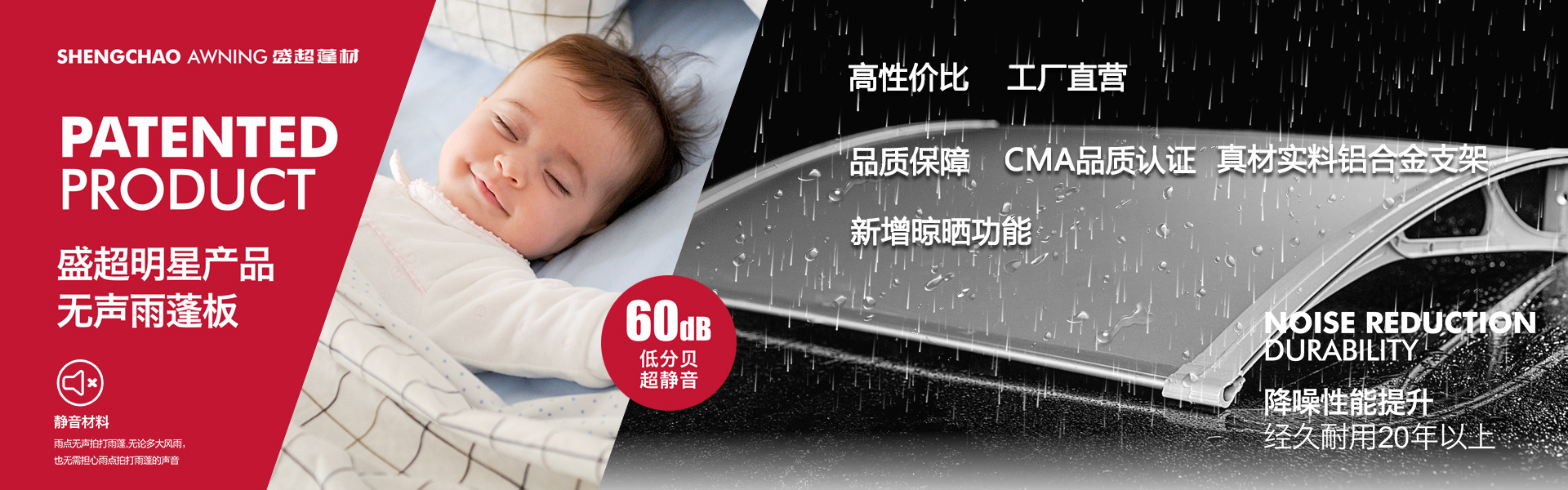 盛超蓬材是由四川超諾商貿有限公司創辦,是一家集研發、生產、銷售和服務于一體的專業雨蓬供應商。主要產品:實心耐力板,中空陽光板、多層板、蜂窩板、鋁瓦、消聲鋁瓦、不銹鋼消聲等材料的雨蓬產品。自主研發多款雨蓬,擁有自己的專利和檢測報告。其中明星產品新型組裝式雨蓬,擁有組裝簡便,美觀耐用、抗噪音,性價比高等優勢,多項檢測指標領跑同行業。受到了市場和經銷商的高度認可。 公司自成立至今,從銷售到研發再到生產,已經過了3次跨越式的發展。2017年已成為四川雨蓬行業內庫房面積大,員工多的一家公司。產值每年以平均20%的速度快速增長。可以說客戶是我們的老師,和他們合作使我們得到很多的學習機會來提高自身的技術水平和管理水平,是我們生產和發展的動力。